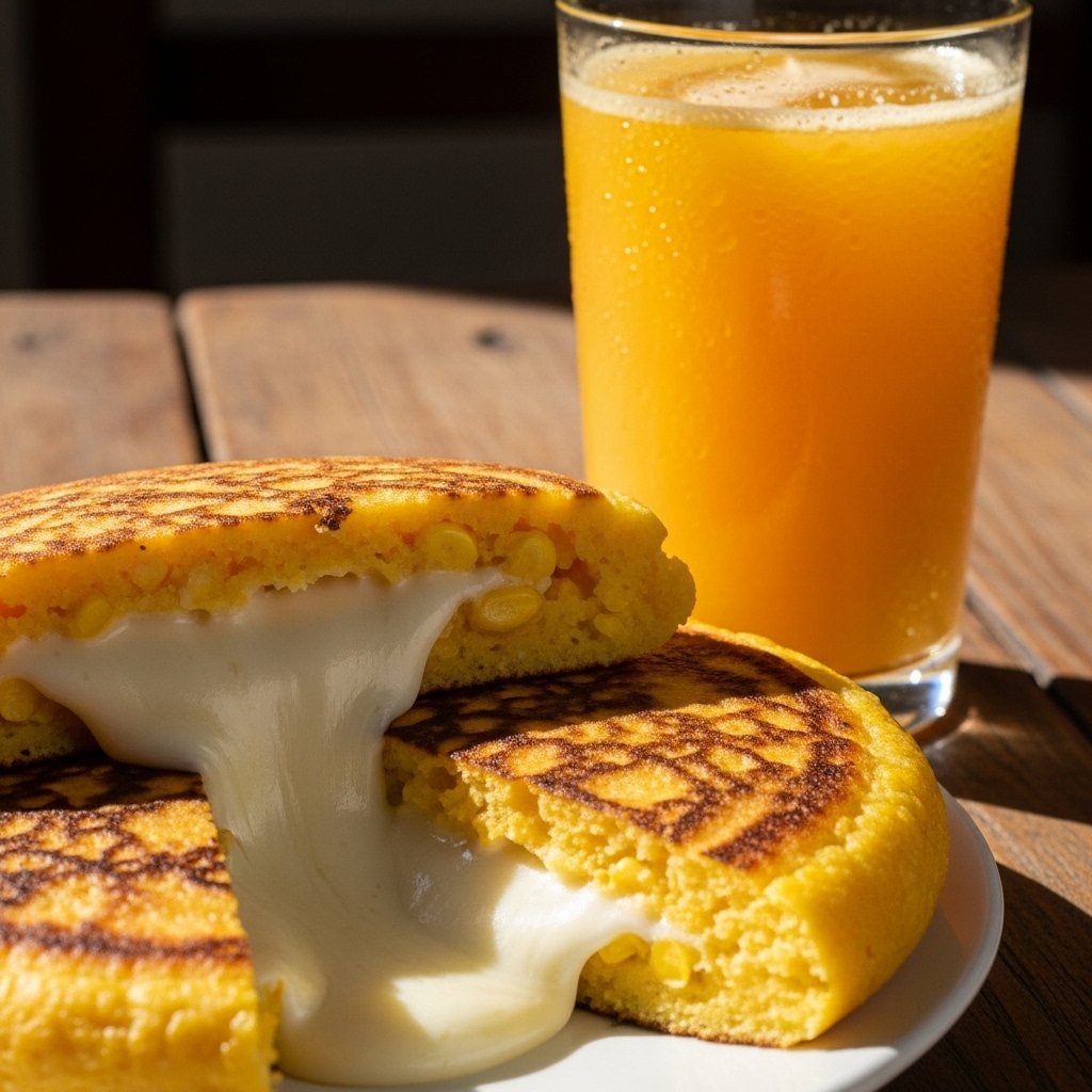 Arma tu mañana con el Combo Llanero Energético. Disfruta una cachapa con queso de mano, recién hecha y sin gluten, acompañada de un jugo natural o de una cremosa chicha venezolana. Ideal para arrancar el día con sabor auténtico y energía hecha en casa. Perfecto para quienes quieren un desayuno tradicional, sabroso y nutritivo.